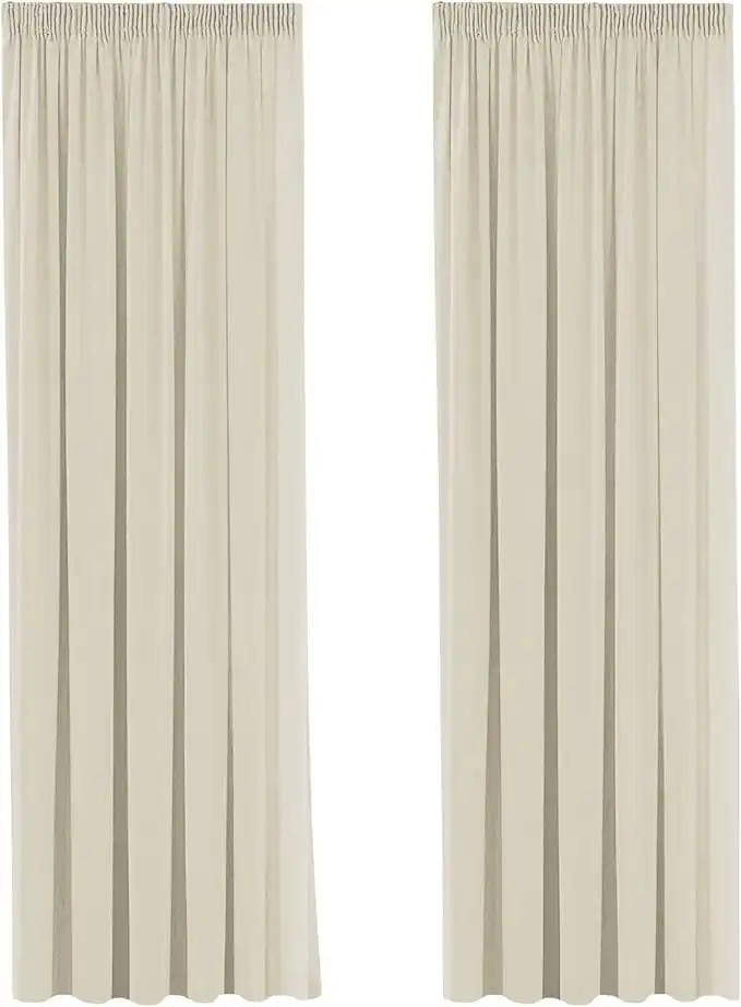 amazon.aePencil Pleat Blackout Window Curtains for Room Darkening & Privacy Protected Decorative Window Treatments Drapery for Living Room - Beige, Energy Saving & Noise Reducting, 90" Width x 72" Drop