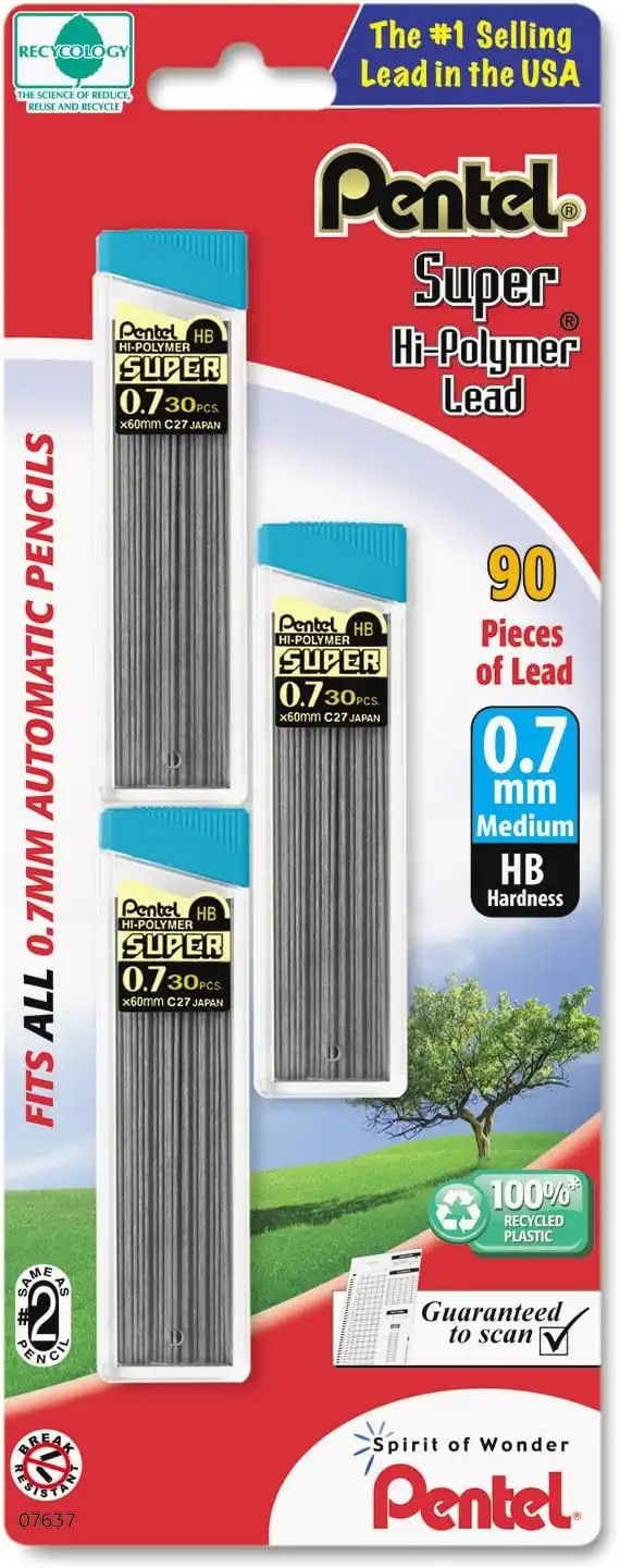 Pentel (180, 0.7 mm) - C27BPHB3K6 Super Hi-Polymer Lead Refills, 0.7mm, HB, Black (180)