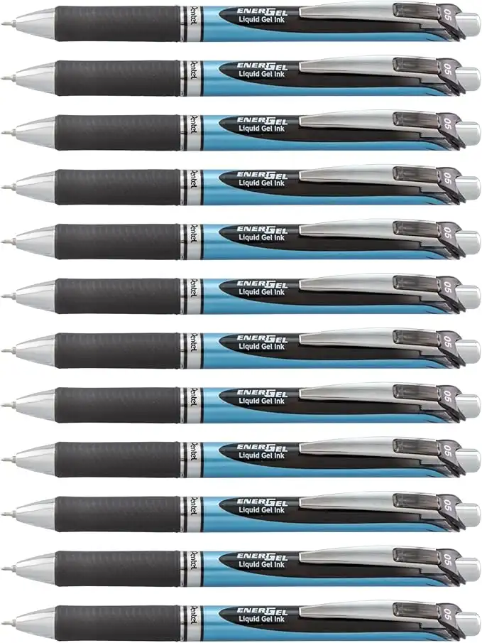 Pentel® Energel™ Deluxe Rtx Retractable Liquid Gel Pens, Fine Point, 0.5 mm, 54% Recycled, Blue Barrel, Black Ink, Pack Of 12 Pens — Price History & Tracker | DeserTracker