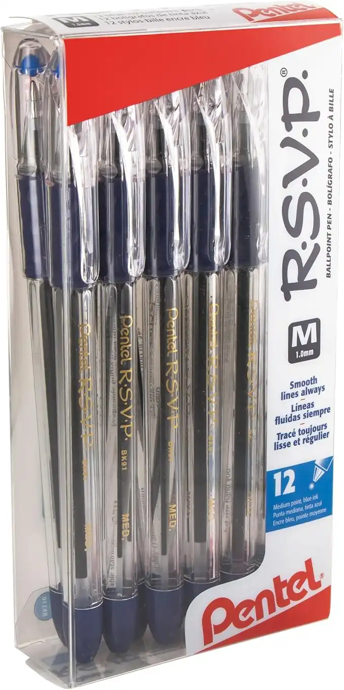 Pentel R.S.V.P. Ball Point Pen, Medium Line, Blue Ink, 12 Pack (BK91PC12C) — Price History & Tracker | DeserTracker