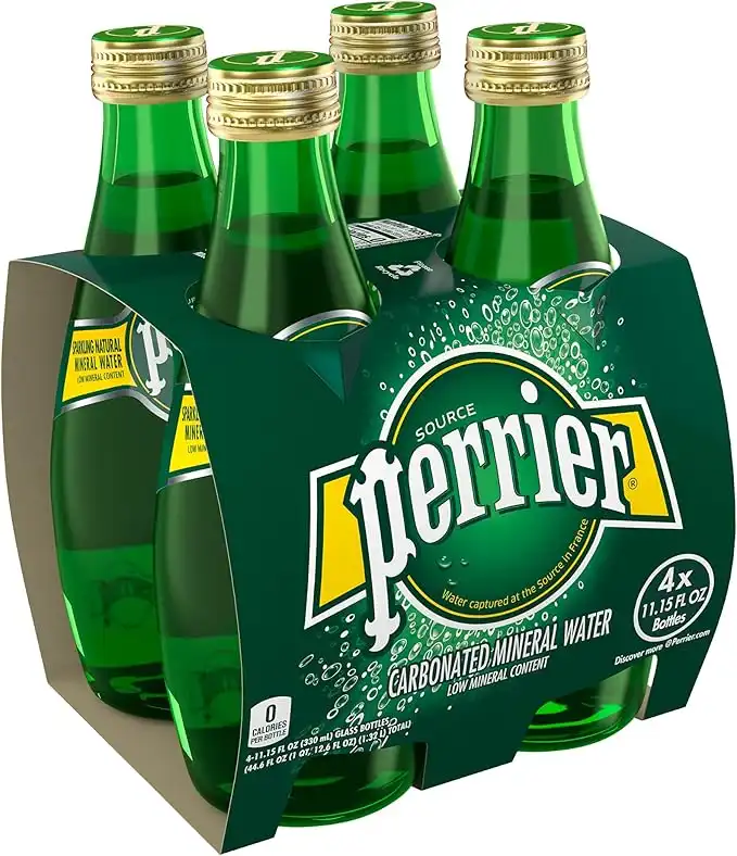 Perrier Sparkling Mineral Water Regular Glass Bottle, 4 x 330 ml