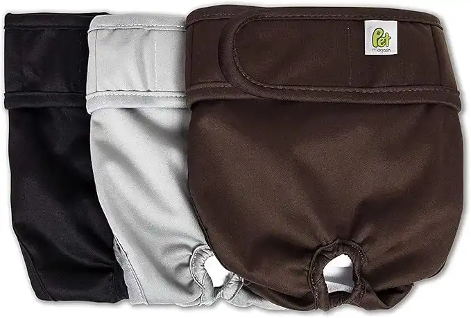 3. Pet Magasin Reusable Washable Dog Diapers (Pack of 3), Highly Absorbent with Strong & Flexible Closure (Original, XS (10”-12” Waist))