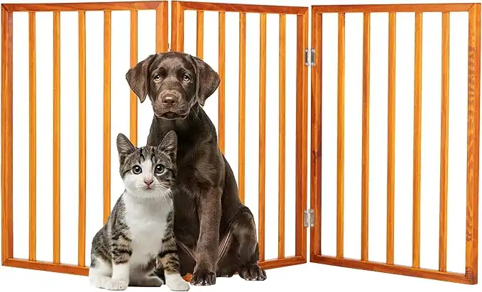 PETMAKER Pet Gate - 3-Panel Indoor Foldable Dog Fence for Stairs or Doorways - 54x24-Inch Retractable Wood Freestanding Dog Gates (Mahogany) — Price History & Tracker | DeserTracker