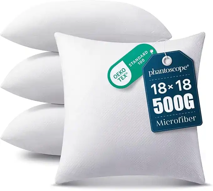 PHANTOSCOPE 4 Packs Polyester Throw Pillow Insert Sham Square Form Sofa Bed Cushion Cover White 18 x 18 inch for Home Decor — Price History & Tracker | DeserTracker