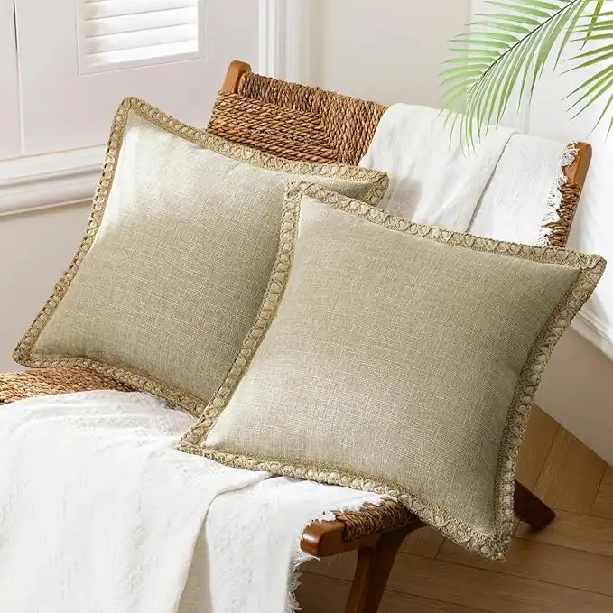 amazon.aePhantoscope Pack of 2 Farmhouse Decorative Solid Throw Decorative Pillow Cover Burlap Linen Trimmed Tailored Edges, Oatmeal 18 x 18 inches 45 x 45 cm