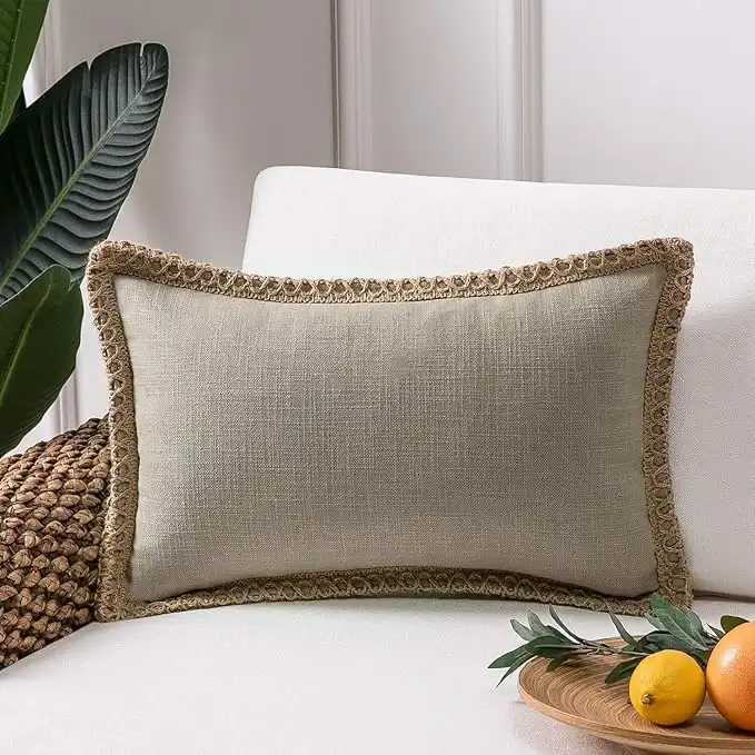 amazon.aePhantoscope Farmhouse Solid Throw Decorative Pillow Cover Burlap Linen Trimmed Tailored Edges Outdoor Pillow Beige 12 x 20 inches, 30 x 50 cm