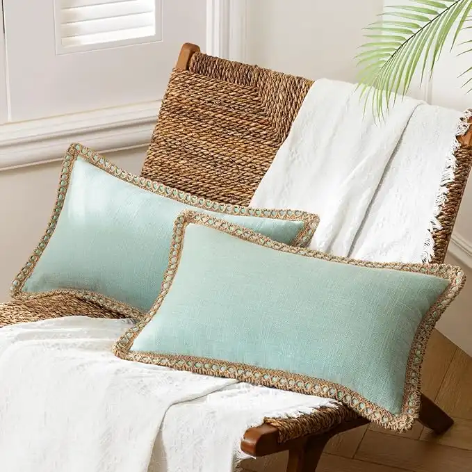 amazon.aePhantoscope Pack of 2 Farmhouse Decorative Solid Throw Decorative Pillow Cover Burlap Linen Trimmed Tailored Edges Light Turquoise 12 x 20 inches, 30 x 50 cm