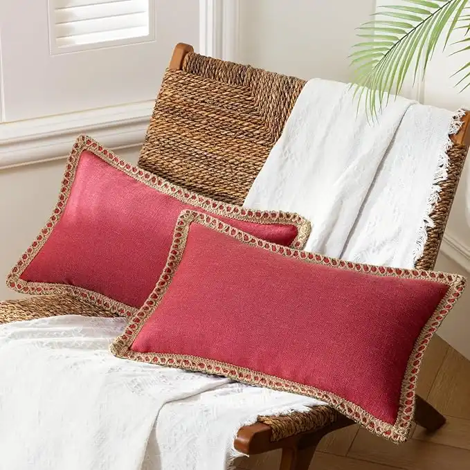 amazon.aePhantoscope Pack of 2 Farmhouse Decorative Throw Decorative Pillow Cover Burlap Linen Trimmed Tailored Edges Red, Plain, 12 x 20 inches, 30 x 50 cm