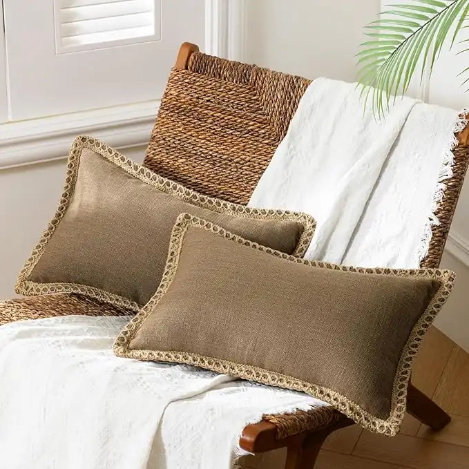 amazon.aePhantoscope Pack of 2 Farmhouse Decorative Solid Throw Decorative Pillow Cover Burlap Linen Trimmed Tailored Edges Coffee 12 x 20 inches, 30 x 50 cm