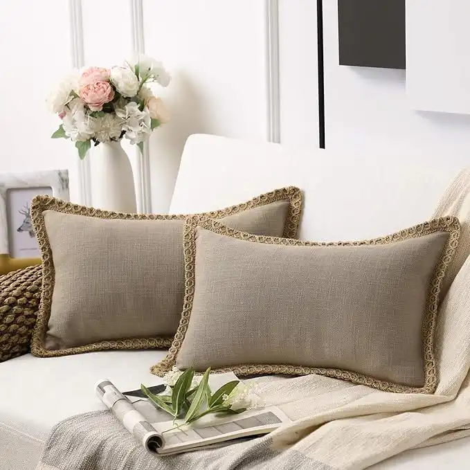 amazon.aePhantoscope Pack of 2 Farmhouse Decorative Throw Decorative Pillow Cover Burlap Linen Trimmed Tailored Edges Beige, Plain, 12 x 20 inches, 30 x 50 cm