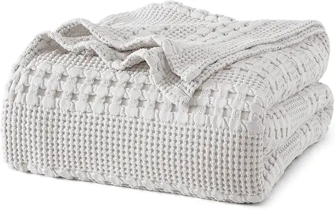 amazon.aePHF 100% Cotton Waffle Blanket King Size, 108"x90" Pre-Washed Soft Waffle Weave Blanket for All Season, Lightweight and Breathable Blanket for Couch Bed Sofa, Light Grey