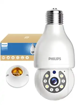 Philips 360° Smart Bulb Camera (with Mounting Base) – Easy Installation Indoor & Outdoor Security Camera, Full Color Night Vision, Smart Motion Alerts, Two-Way Audio, Cloud & TF Card Storage up to 128GB, AI Image Enhancement, 1080P Video Enhanced to 2K-Like Detail