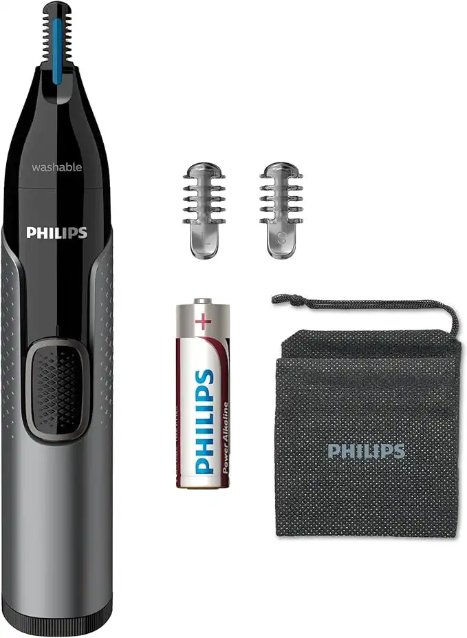 PHILIPS Nose Hair Trimmer, Series 3000 Nose, Ear and Eyebrow Trimmer Showerproof with Protective Guard System, Battery Operated, No pulling Guaranteed NT3650/16, Grey