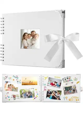 Photo Album, Scrapbook Photo Albums 40 Sheets(80 Pages), Thick Paper, Metal Corners, Ribbon Closure for Scrapbooking Albums, Art and Craft, White