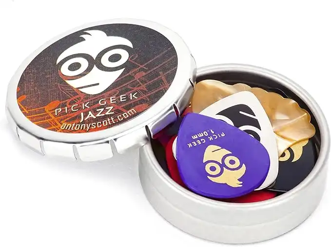 Pick Geek Guitar Pick Set | 18 Cool Custom Assorted Guitar Picks | for your Electric, Acoustic, or Bass Guitar | 5 Different Shapes and Thicknesses | Presented in a Luxury Metal Pocket Box — Price History & Tracker | DeserTracker