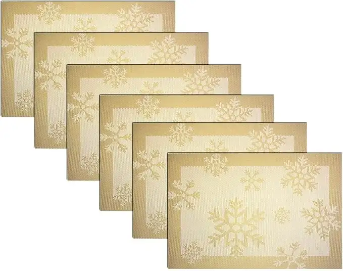 PIGCHCY Christmas Placemats Snowflake Woven Heat Resistant Placemats Washable Easy to Clean Table Mats for Dining Room and Decor(Set of 6, Gold) — Price History & Tracker | DeserTracker