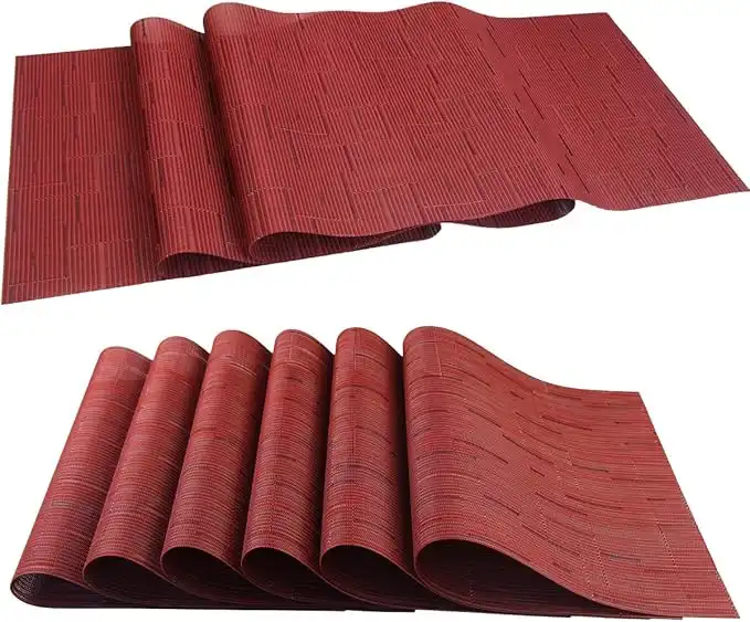 PIGCHCY Elegant Placemats with Matching Table Runner,Washable Placemats Crosswoven Vinyl Table mats Sets(6pcs Placemats+1pcs Table Runner,Same Style,Burgundy Red) — Price History & Tracker | DeserTracker