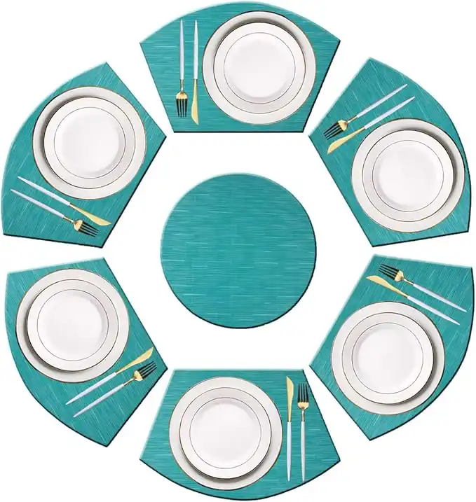 PIGCHCY Wedge Shaped Placemats Set of 6 with Centerpiece Round Mats Washable Kitchen Placemats Heat-Resistant Table Mats (Teal Blue) — Price History & Tracker | DeserTracker