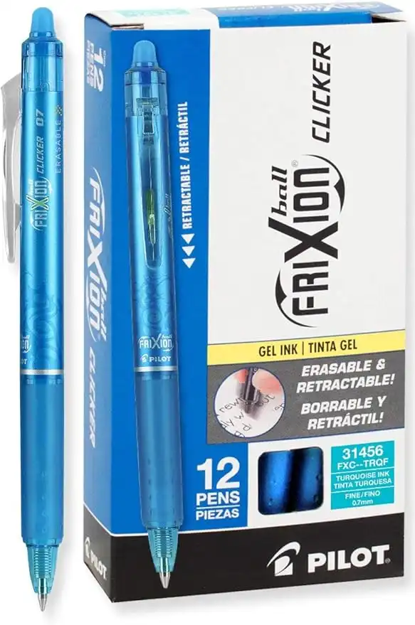 amazon.aePilot FriXion Clicker Retractable Erasable Gel Pens, Fine Point, Turquoise Ink, Dozen Box (31456)