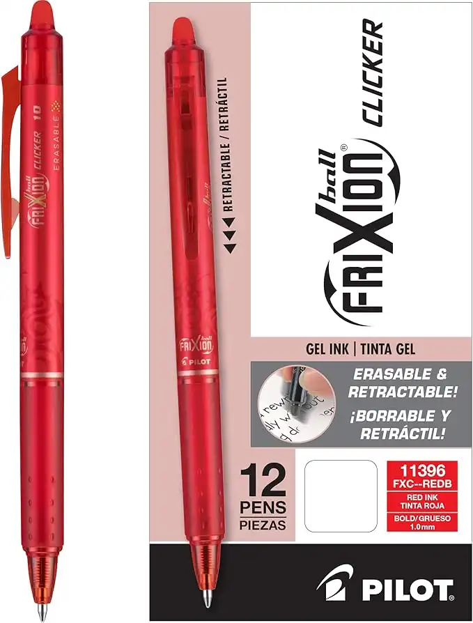 amazon.aePilot FriXion Clicker Retractable Erasable Gel Pens, 0.7mm Fine Point, Red Ink, Dozen Box
