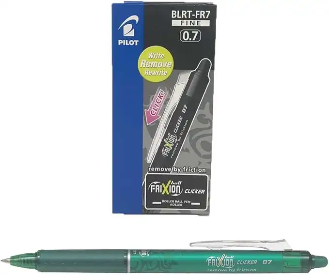 Pilot Frixion Clicker Retractable Erasable Rollerball 0.7 mm Tip - Green, Box of 12