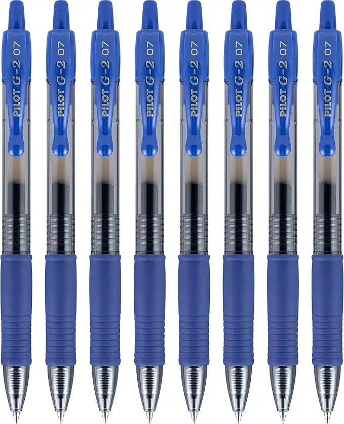 PILOT G2 Premium Refillable and Retractable Rolling Ball Gel Pens, Fine Point, Blue, 8-Pack (15301)