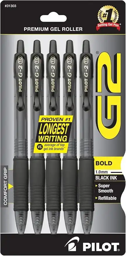 Pilot G2 Retractable Premium Gel Ink Roller Ball Pens Bold Point (Black, 10-Pack)