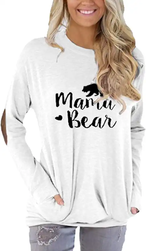 Pink Queen Women's Mama Bear T-Shirt Batwing Long Sleeve Tunic Tops White Size S