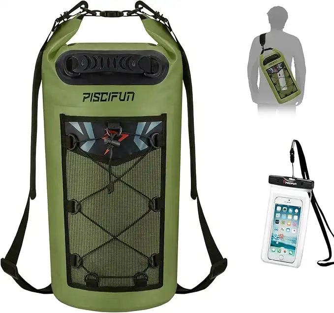 Piscifun Dry Bag, Waterproof Floating Backpack with Waterproof Phone Case for Kayking, Boating, Kayaking, Surfing, Rafting and Fishing, Army Green 10L — Price History & Tracker | DeserTracker
