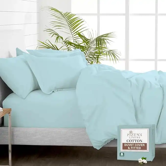 amazon.aePizuna Pure 100% Cotton GCC King Size Duvet Cover Set with Fitted Bed Sheet Baby Blue, 400 Thread Count Long Staple Cotton Bedding Set, Soft Sateen Weave Comforter Set & 40 cm Deep Fitted Sheets