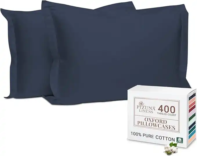 amazon.aePizuna Pure 100% Cotton King Size Pillow Case 50x90 cm Dark Blue, 400 Thread Count Soft Luxurious Long Staple Cotton Sateen Weave Pillow Cover With 5 cm Hem (Cooling Pillowcase - 2 PC)