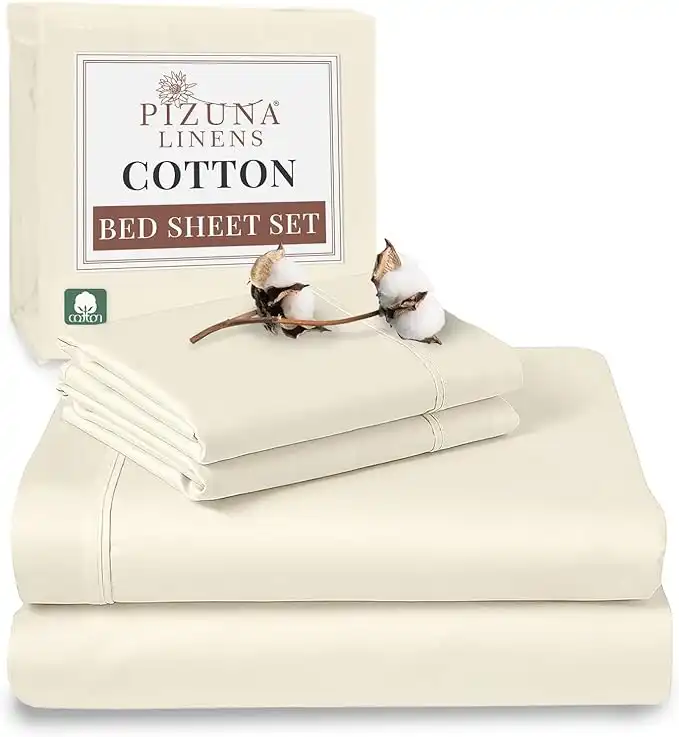 Pizuna Pure 100% Cotton Queen Size Bed Sheet Set New Ivory,400 Thread Count Cozy Luxury Long Staple Cotton Sateen Weave Bedsheets Set (1 Flat Sheet, 1 Fitted Sheet, 2 Pillowcases) — Price History & Tracker | DeserTracker