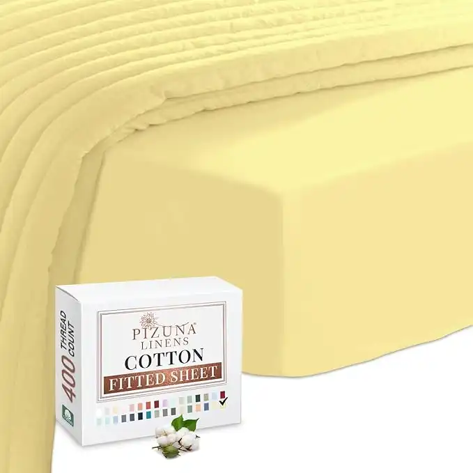 amazon.aePizuna Pure 100% Cotton Single Bed Fitted Sheet 90x200 cm, Mellow Yellow, 400 Thread Count Cool Luxury Soft Long Staple Cotton Sateen Weave, 40cm Deep Pocket Bedsheet (Fitted Bed Sheet -1PC)
