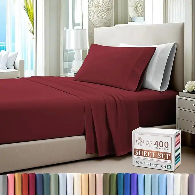 Pizuna Pure 100% Cotton Twin XL Bed Sheet Set Rio Red, 400 Thread Count Cozy Luxury Long Staple Cotton Sateen Weave Bedsheet Set (1 Flat Sheet, 1 Fitted Sheet, 1 Pillowcase) — Price History & Tracker | DeserTracker