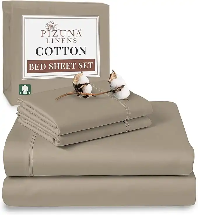 amazon.aePizuna Pure Combed Cotton Bed Sheet King Size Set Simply Taupe, 400 Thread Count Cozy Luxury 100% Long Staple Cotton Sateen Weave Bedsheet Set (1 Flat Sheet, 1 Fitted Sheet, 2 Pillowcases)