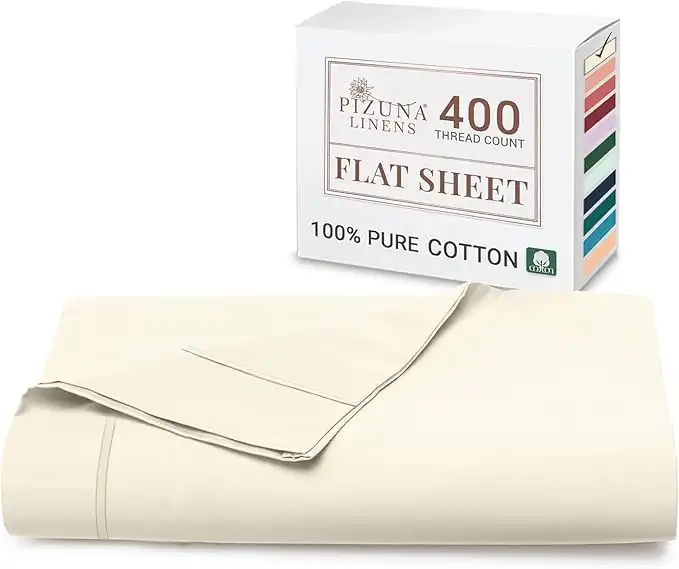 Pizuna Pure Combed Cotton Double Flat Sheet 230x280 cm New Ivory, 400 Thread Count Luxurious 100% Long Staple Cotton Sateen Weave Bed Sheet New Ivory (Flat Bed Sheet -1 PC) — Price History & Tracker | DeserTracker
