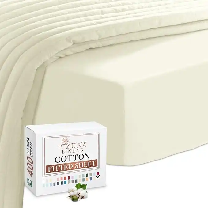 Pizuna Pure Combed Cotton Queen Fitted Sheet 160x200 cm Off White, 400 Thread Count Cool Luxury Soft 100% Long Staple Cotton Sateen Weave, 40cm Deep Pocket Bedsheet (Fitted Sheet -1PC) — Price History & Tracker | DeserTracker