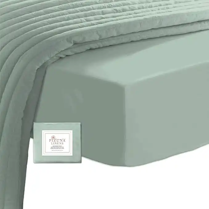 amazon.aePizuna Pure Combed Cotton Queen Fitted Sheet 160x200 cm Sage, 400 Thread Count Cool Luxury Soft 100% Long Staple Cotton Sateen Weave, 40cm Deep Pocket Bedsheet (Fitted Sheet -1PC)