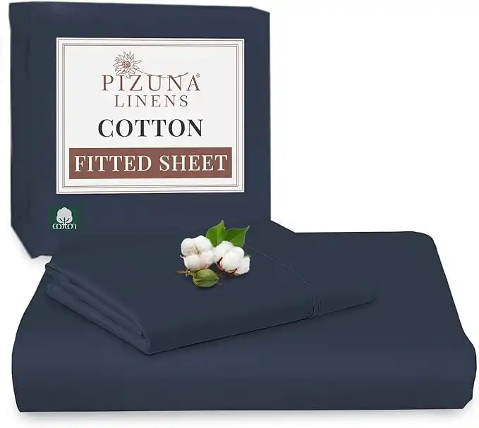 amazon.aePizuna Pure Combed Cotton Single Bed Fitted Sheet 90x200 cm, Dark Blue, 400 Thread Count Cool Luxury Soft 100% Long Staple Cotton Sateen Weave, 40cm Deep Pocket Bedsheet with 1 Pillowcase