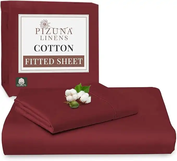 Pizuna Pure Combed Cotton Single Bed Fitted Sheet 90x200 cm, Rio Red, 400 Thread Count Cool Luxury Soft 100% Long Staple Cotton Sateen Weave, 40cm Deep Pocket Bedsheet with 1 Pillowcase — Price History & Tracker | DeserTracker