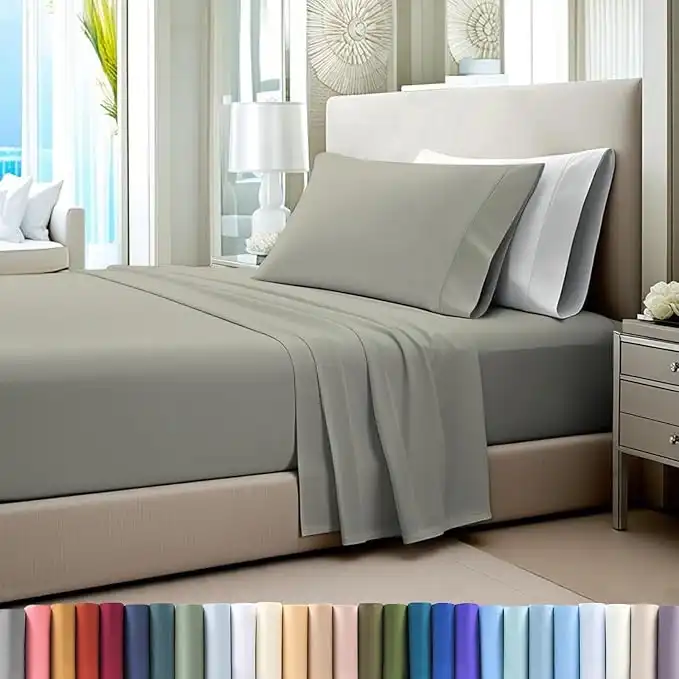 amazon.aePizuna Pure Combed Cotton Twin Bed Sheet Set Silver, 400 Thread Count Cozy Luxury 100% Long Staple Cotton Sateen Weave Bedsheet Set (1 Flat Sheet, 1 Fitted Sheet, 1 Pillowcase)