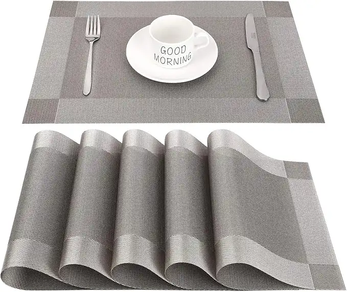 Placemats PVC Non-Slip Washable Heat Resistant Rectangular Vinyl Placemat for Restaurant, Dining Table in Kitchen or Dining Room, 45 x 30 cm Set of 6 (Grey + Silver) — Price History & Tracker | DeserTracker