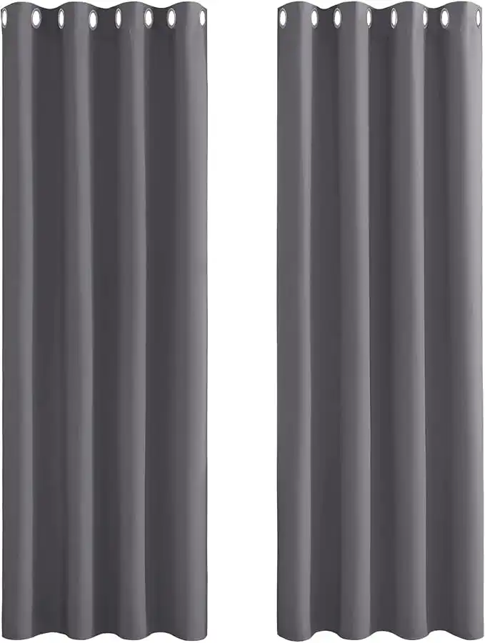 PONY DANCE Grey Blackout Curtains 72 Inch Drop for Living Room, Eyelet Thermal Energy Saving & Light Darkening Curtains for Bedroom, Window Treatment for Bedroom, W46 X L72, Gray