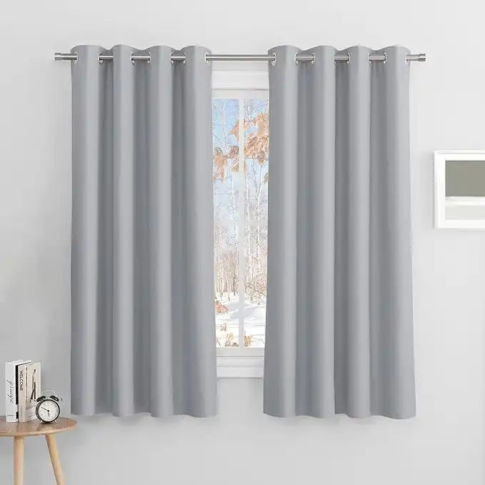 PONY DANCE Silver Curtains Eyelet - 63 Drop Super Soft Decorative Drapes Thermal Insulated Noise Reducing for Living Room/Bedroom, 52 x 63 inches, Silver Grey, 2 Panels
