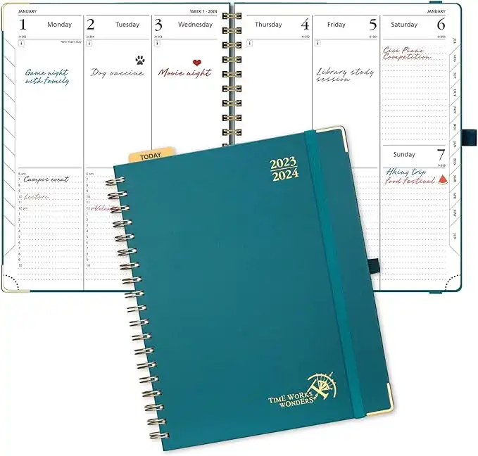 amazon.aePOPRUN Planner 2023-2024 (10'' x 8'') Academic Planner Weekly and Monthly (July 23-June 24) Hard Cover, Spiral Planner with Hourly Time Slots, Wirebound, Tabs, 100 GSM - Pacific Green
