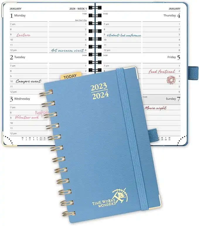 amazon.aePOPRUN Small Planner 2023-2024 (4''x 6.25'') Academic Planner Weekly and Monthly (July 23-June 24) Spiral Planner with Hourly Time Slots, Hard Cover, Wirebound, for Purse, 100 GSM - Haze Blue