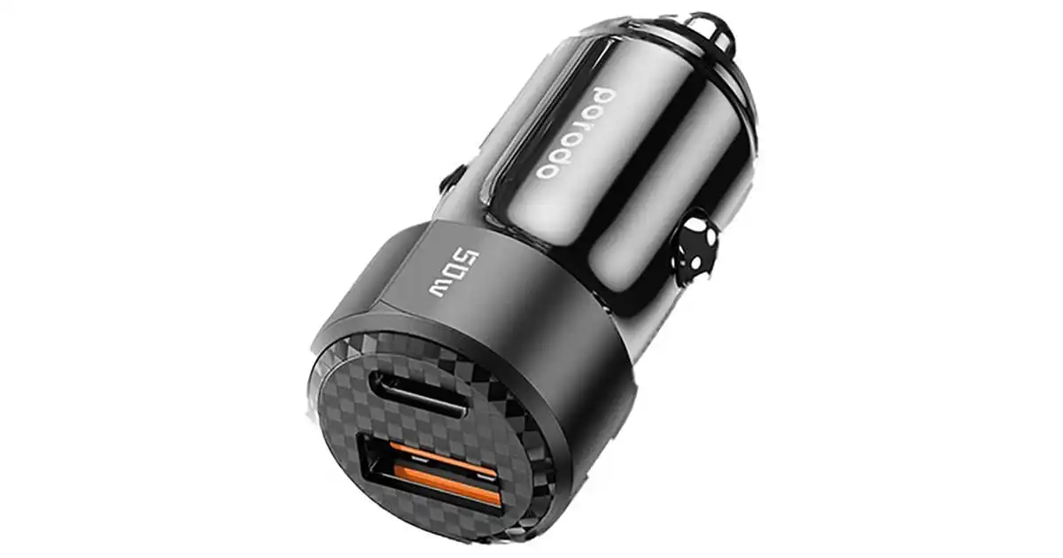 Porodo Dual Port Car Charger With Lightning Cable 50W Black — Price History & Tracker | DeserTracker