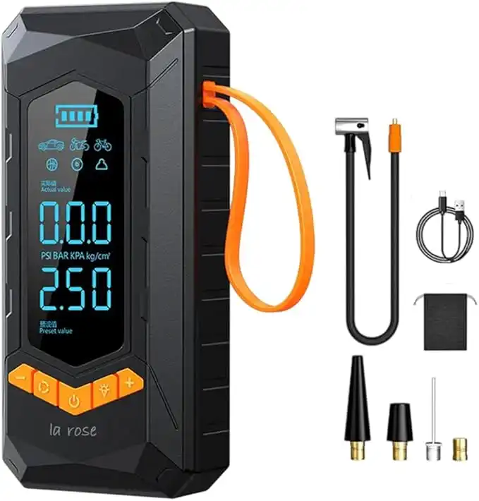 Portable Air Compressor – Digital Tire Inflator with LCD Display, Rechargeable Battery & LED Light – Compact Cordless Pump for Car, Bike, Motorcycle, Sports Balls