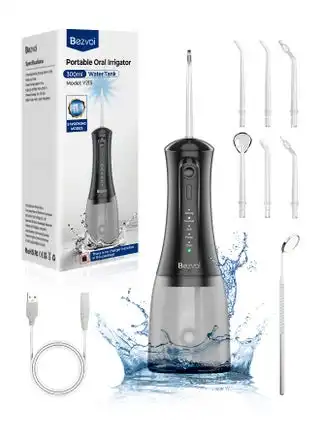 Portable Water Flosser – Cordless, 5 Modes, 300ML, IPX7 Waterproof, Rechargeable Oral Irrigator with 6 Tips for Teeth Cleaning