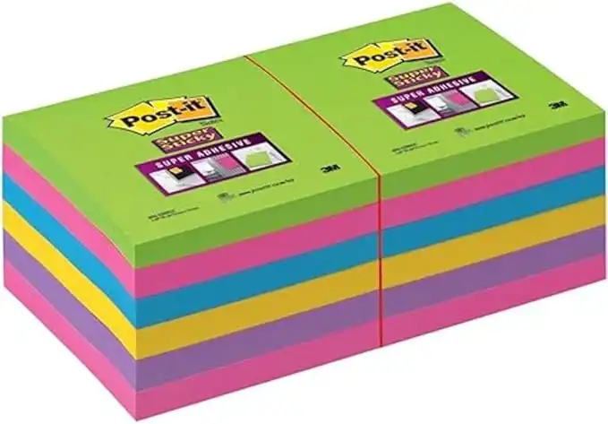 Post-it Post - it 65412SSU Notes 76mm x 76mm Super Sticky Note Pad, Turquoise, Green, Yellow, Fuchsia, Grape (12 pads, 90 sheets per pad) — Price History & Tracker | DeserTracker